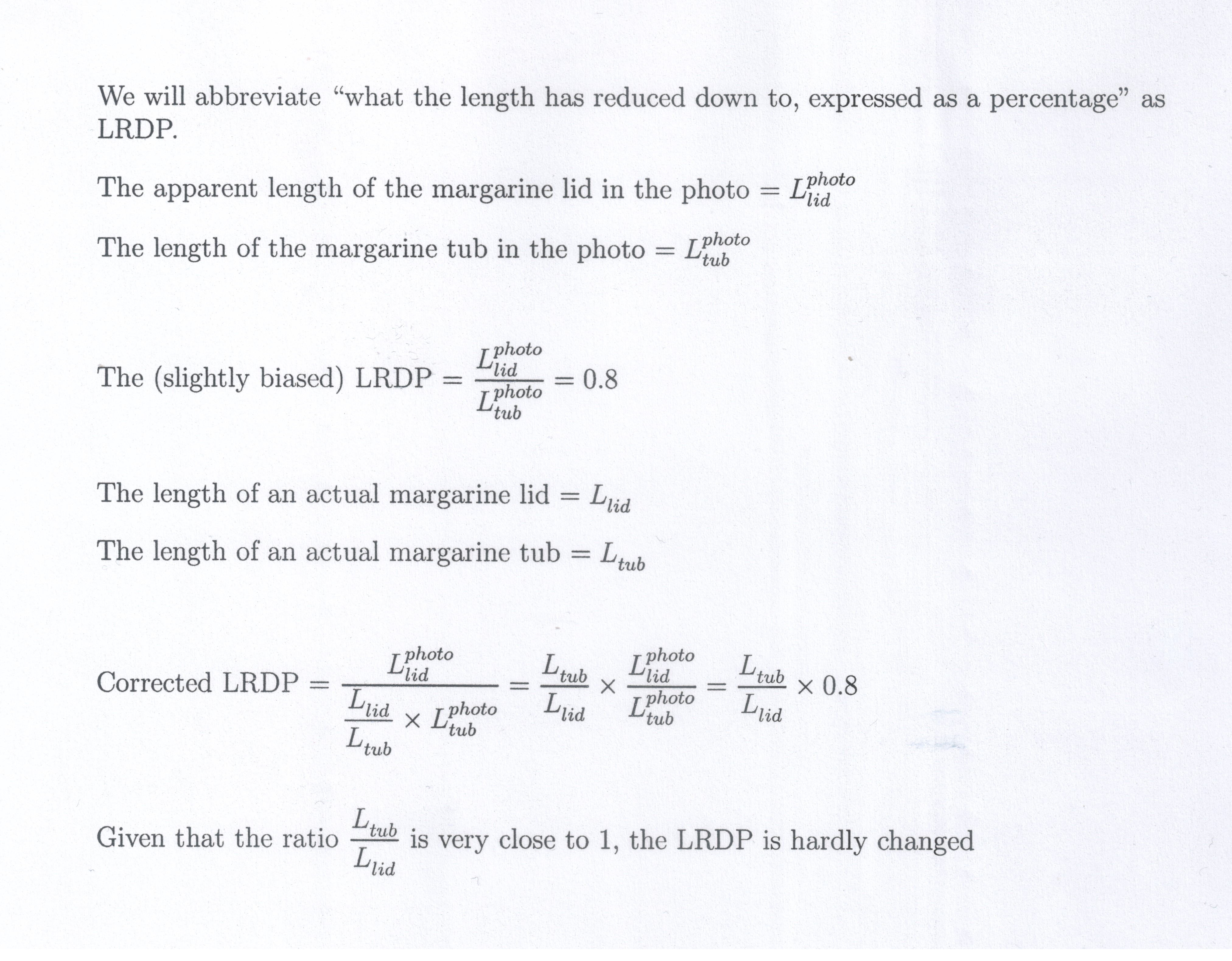 1c) Calculation to compensate for the fact that a margarine lid is very slightly bigger than a margarine tub.