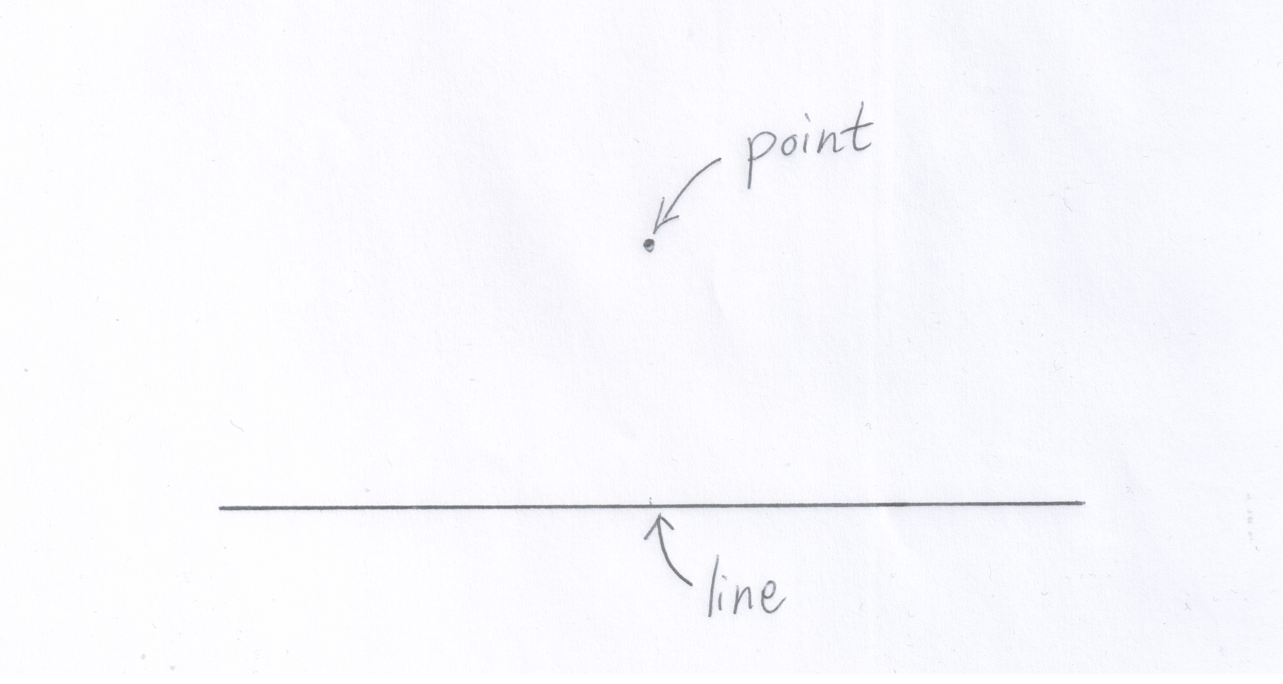 Say you have a point above a horizonal line (see FIG G). What is the shortest distance from the point to the line? See next comment....